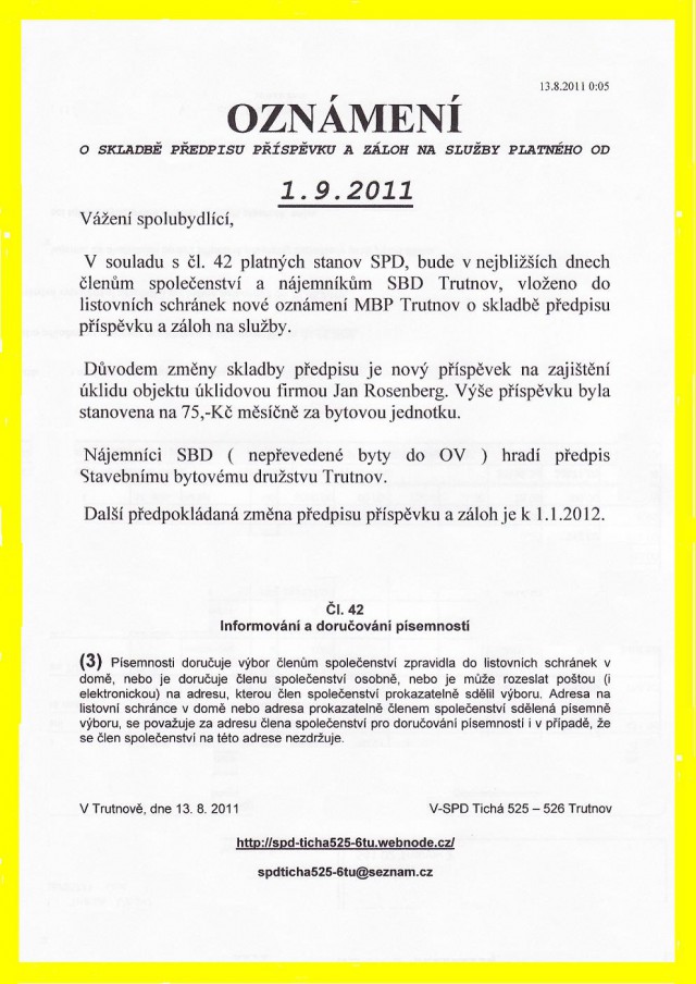 Více informací o úklidu společných prostor ve vývěskách obou vchodů. Hlasovací listiny jsou uloženy u výboru a každému budou na požádání předloženy k nahlédnutí.